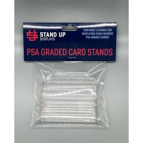 Cleanly display your PSA Graded trading cards with our Graded Card Display Stands! Custom designed to fit your PSA or Vanity Slab slabbed cards.